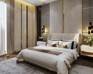 Setiap detail diperhitungkan, mulai dari posisi tempat tidur, lemari, meja rias, hingga area penyimpanan, sehingga kamar tidur benar-benar fungsional dan memikat.