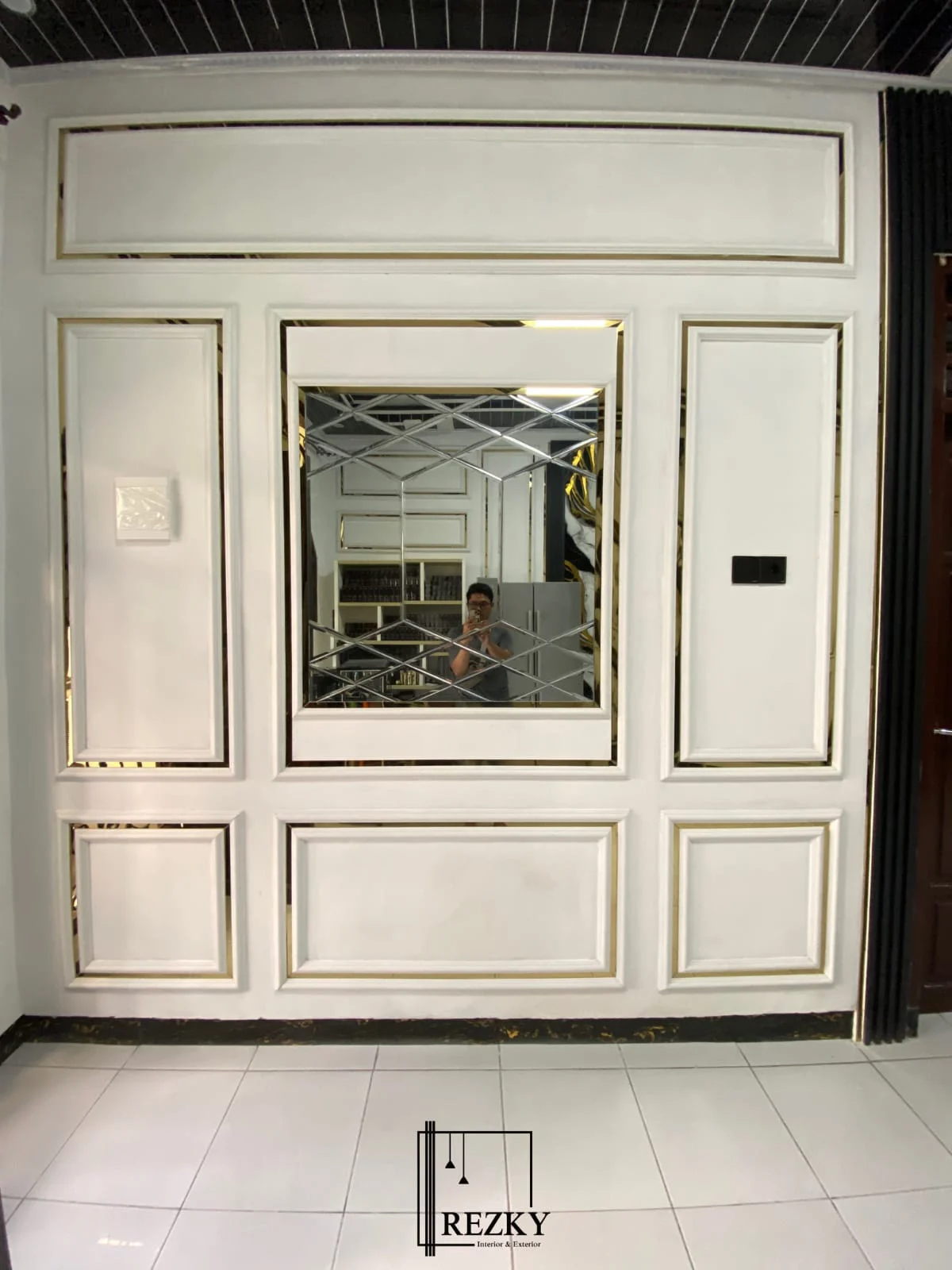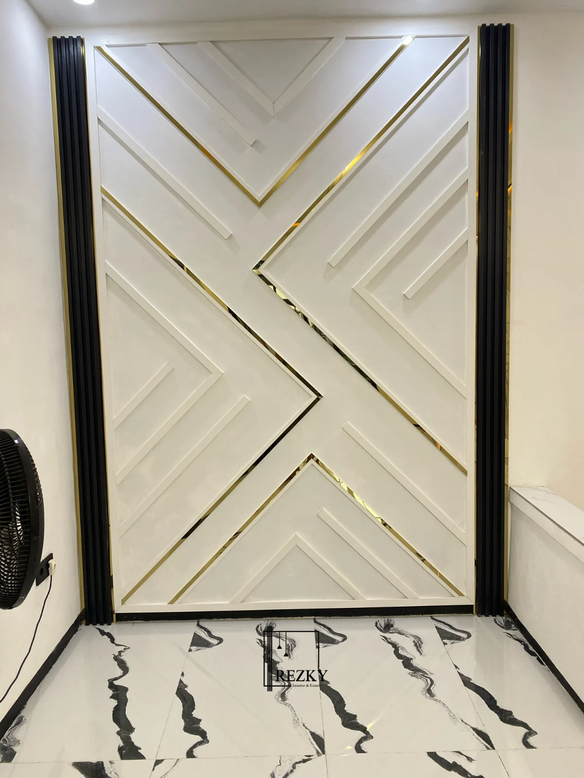 Aksen garis vertikal (louvers) untuk dimensi dinding yang modern.