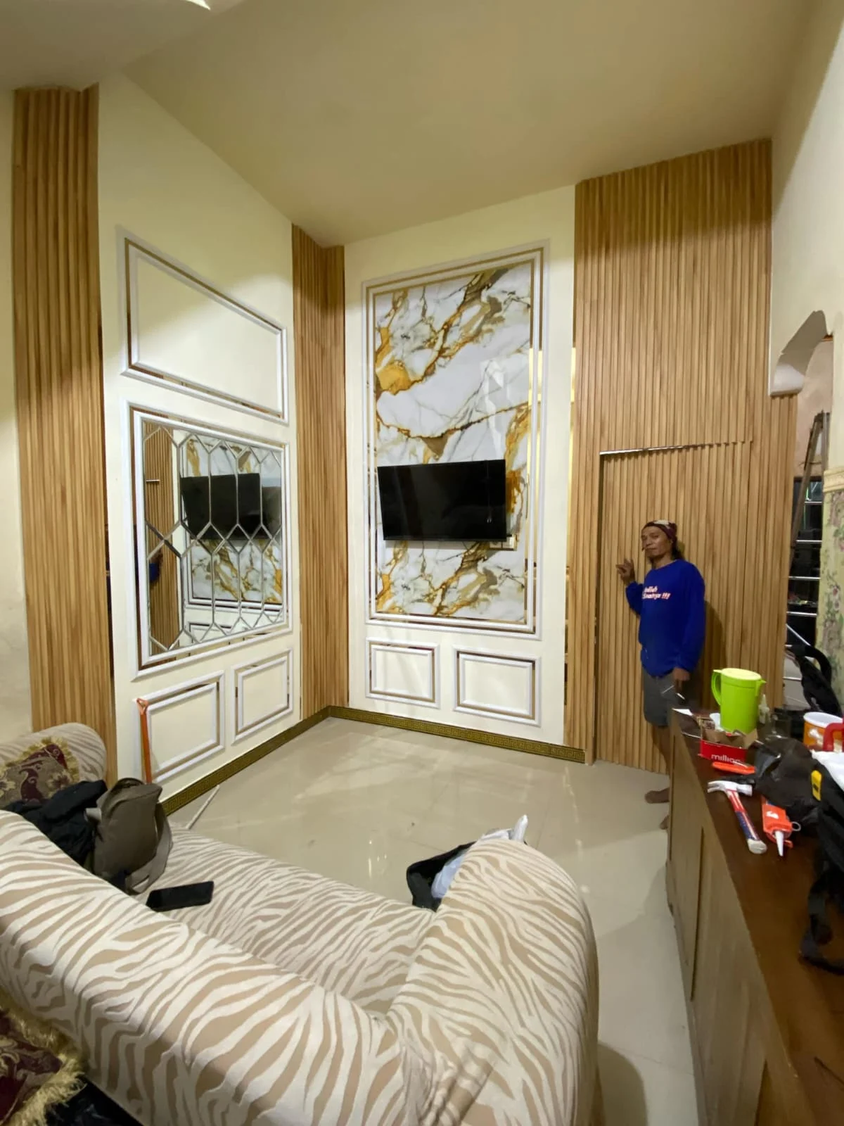 Salah satu keunggulan kami adalah kecepatan. Untuk pemasangan satu bidang dinding (seperti Backdrop TV atau Wallboard kamar), pengerjaan biasanya selesai hanya dalam 1 hari kerja. Pemasangannya bersih, praktis, dan tidak meninggalkan banyak debu di rumah Anda.